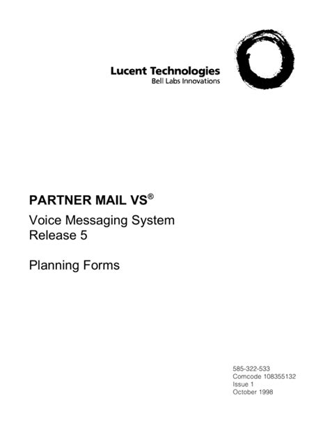 Read PARTNER MAIL VS Voice Messaging System Release 5 Installation ... Doc